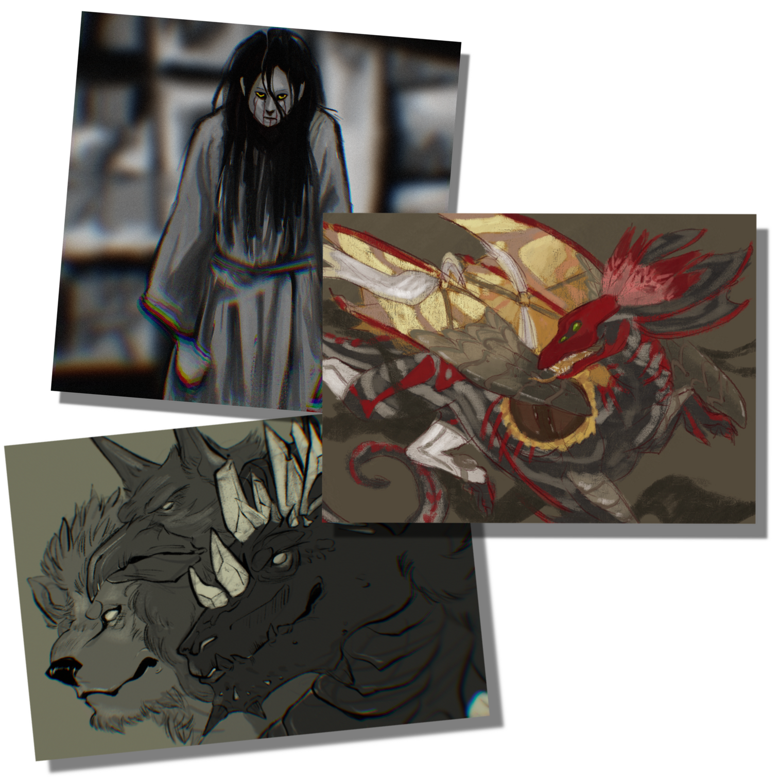 A quick experimental sketch, typically exploring different styles, brushes, and other techniques. Usually drawn in 1 to 1.5 hours time.